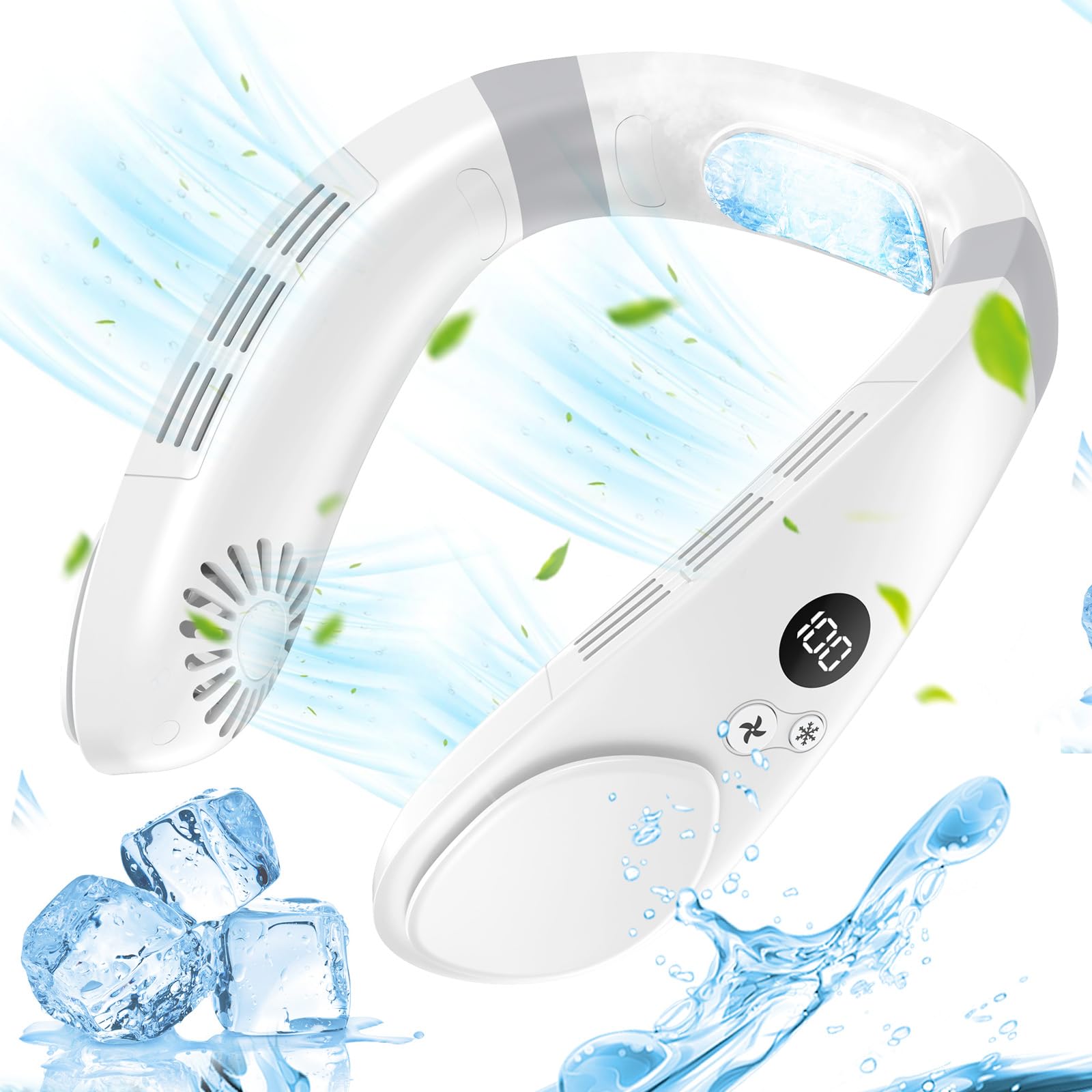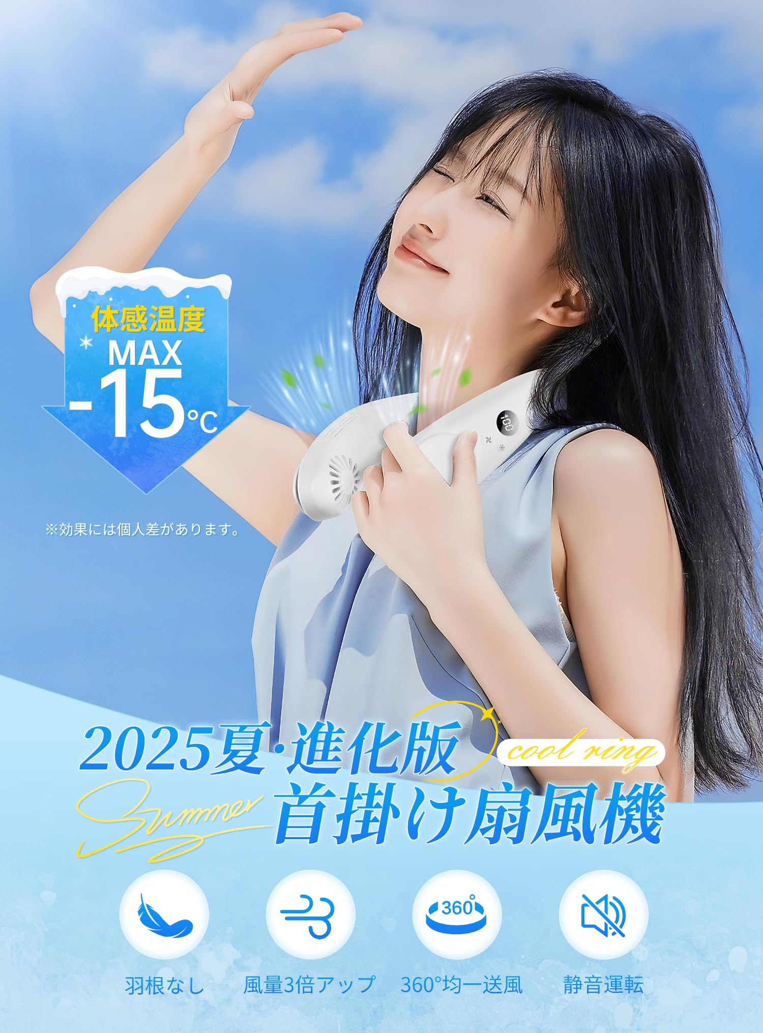 【特価商品】「2025年夏革新型・首掛け扇風機」ネッククーラー ネックファン 携帯扇風機 小型 3段階風力調節 冷却プレート搭載 20dB静音 超軽量 羽根なし モバイル 強力 大風量 LEDディスプレイ表示 4400mAh大容量 長時間稼働 Type-C充電式 熱中症対策 花火大会/通勤通学/アウトドア/夏キャンプ/プレゼントなど(ホワイト) | POPストア