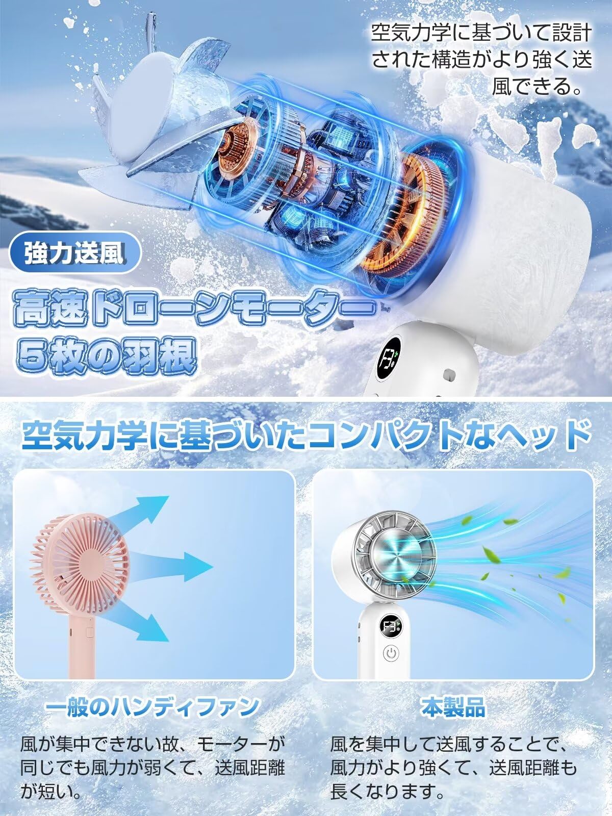 ??【コンパクトで軽くて、持ち運びやすい】寸法は5.3x4.7x16.5cmで、わずか175gの重さ。女性にも長時間持っていても疲れません。コンパクトでバッグに収納するのも便利です。真夏の出かけはこれが欠かせないです。