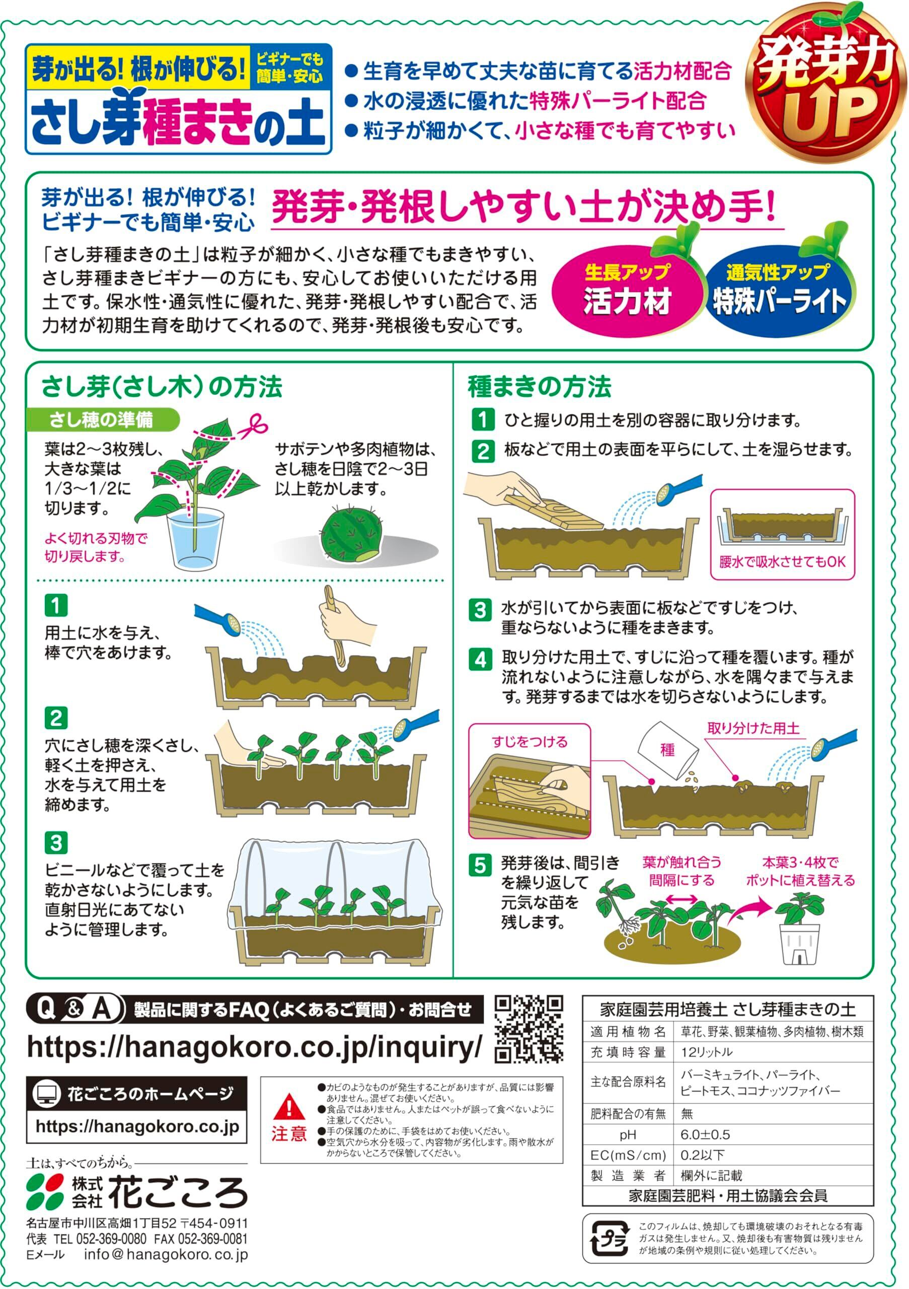 特長:生育を早め丈夫な苗に育てる活力材、水の浸透性が優れた特殊パーライトを配合。粒子が細かいので、小さな種にも使えます
