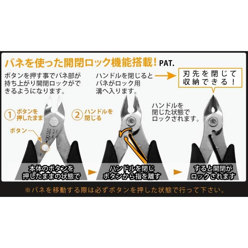 ●バネを使った開閉ロック機構搭載、刃先を閉じた状態で安全に収納できる(PAT.)