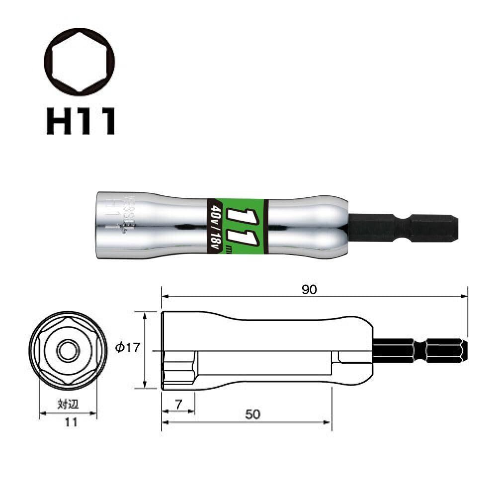 ベッセル(VESSEL) セミロングソケット 対辺11×90mm 6角 SL201190