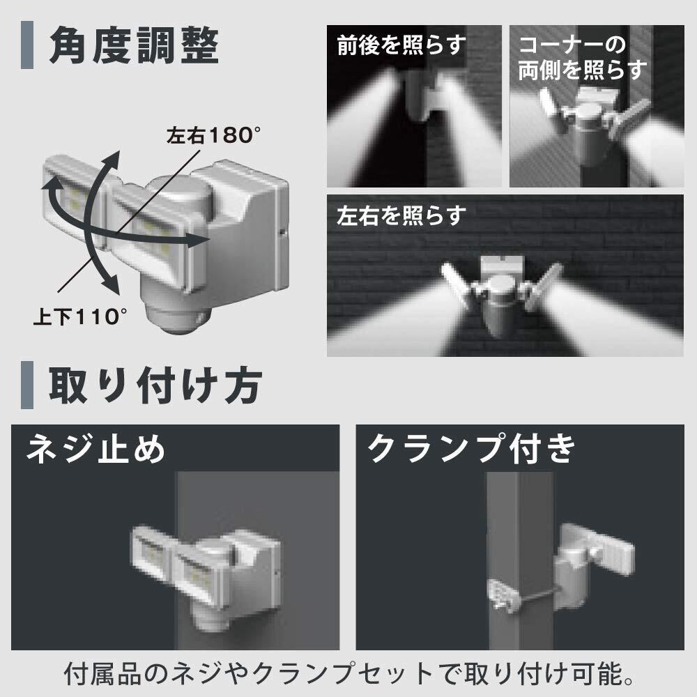 センサーが人の動きを検知して自動的に点灯するLED防犯センサーライト。しっかり明るく照らすAC式です。