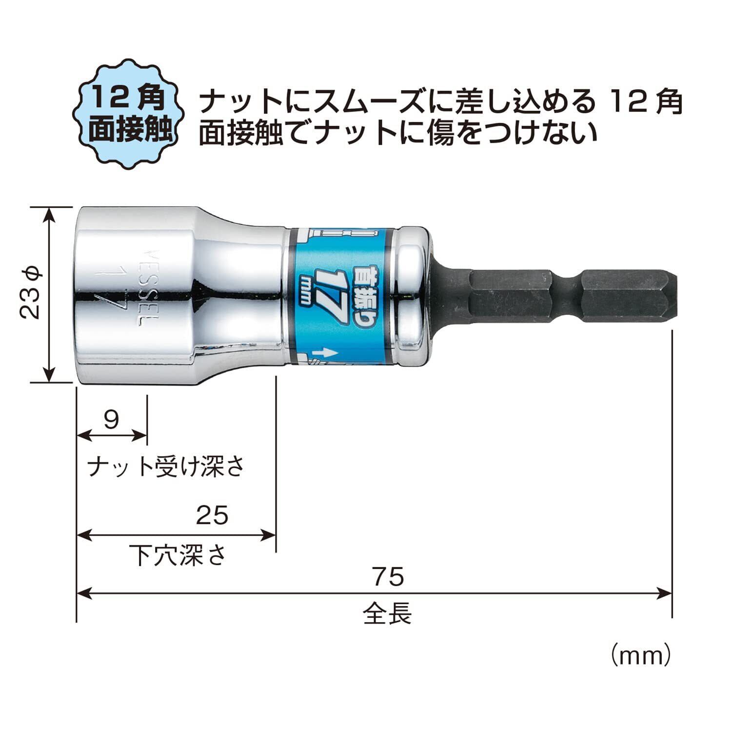 ベッセル(VESSEL) 剛鍛首振りショートソケット 対辺17 コンパクトサイズのユニバーサルソケット WSA2017