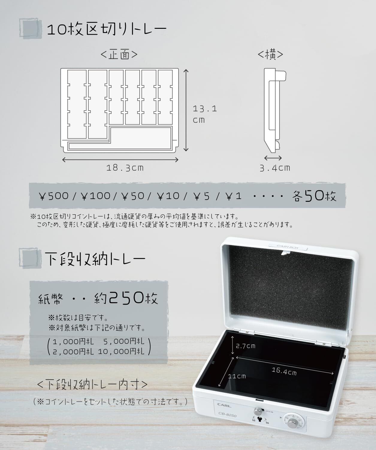 【硬貨収納枚数】500円 / 50枚, 100円 / 50枚, 50円 / 50枚, 10円 / 50枚, 5円 / 50枚, 1円 / 50枚