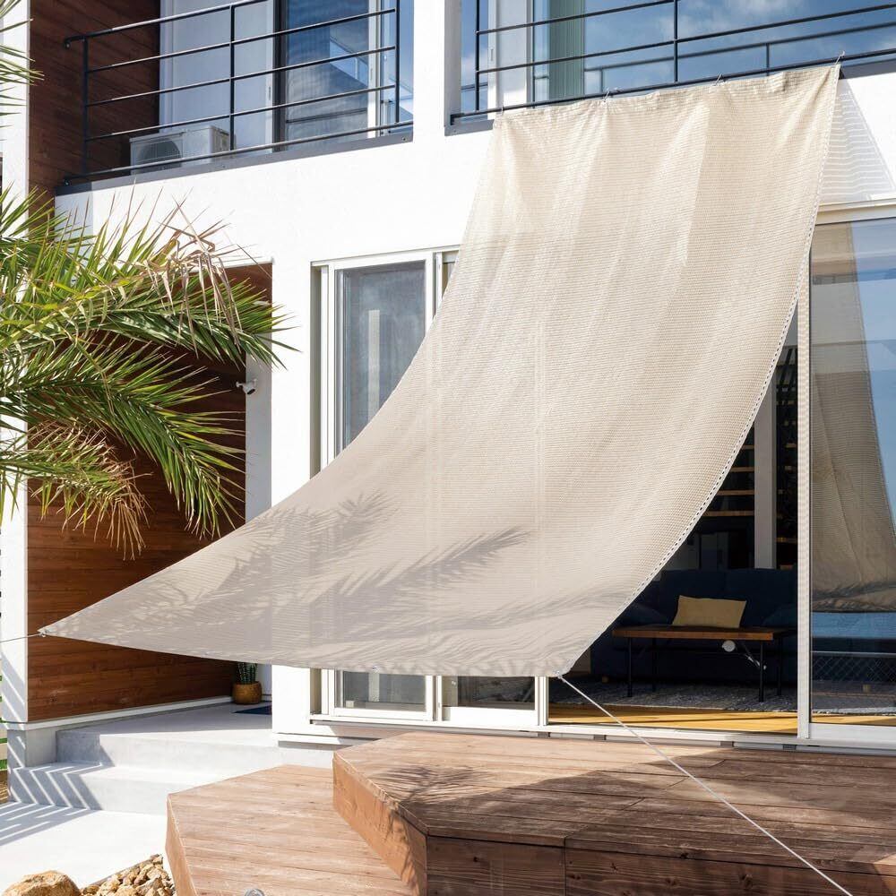破れにくい。アルミハトメ、生地折り返し加工で強くて破れにくい。豊富な取付方法。物干し竿が通せるボールポケット付き。(直径3cmまで対応)ポールポケットを下側にして市販のボール等を入れるとピンと張れる。目かくしにも使えるボタンホール仕様。