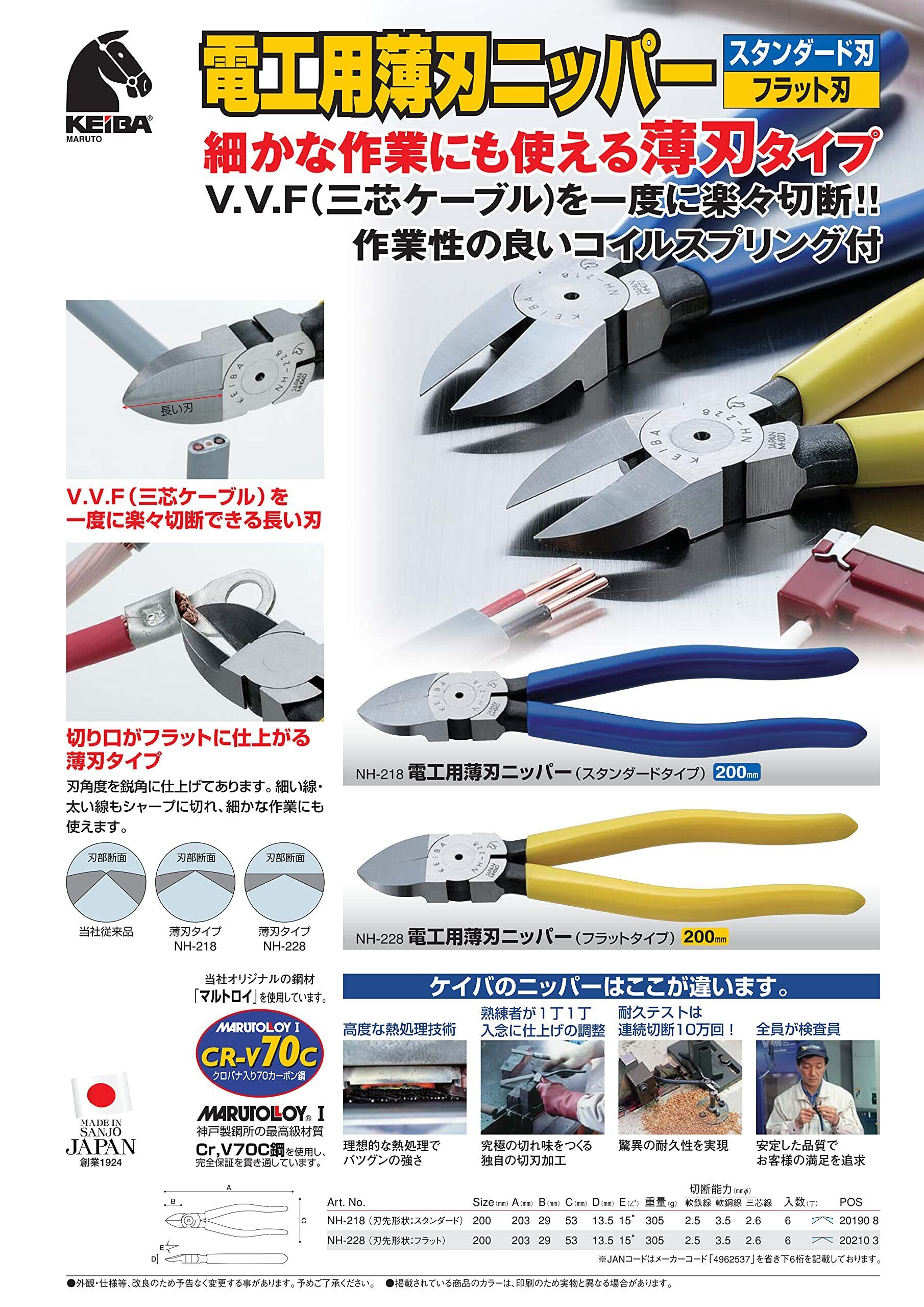 Maruto Hasegawa kosakujo ケイバ(KEIBA) 電工用薄刃ニッパー NH-228