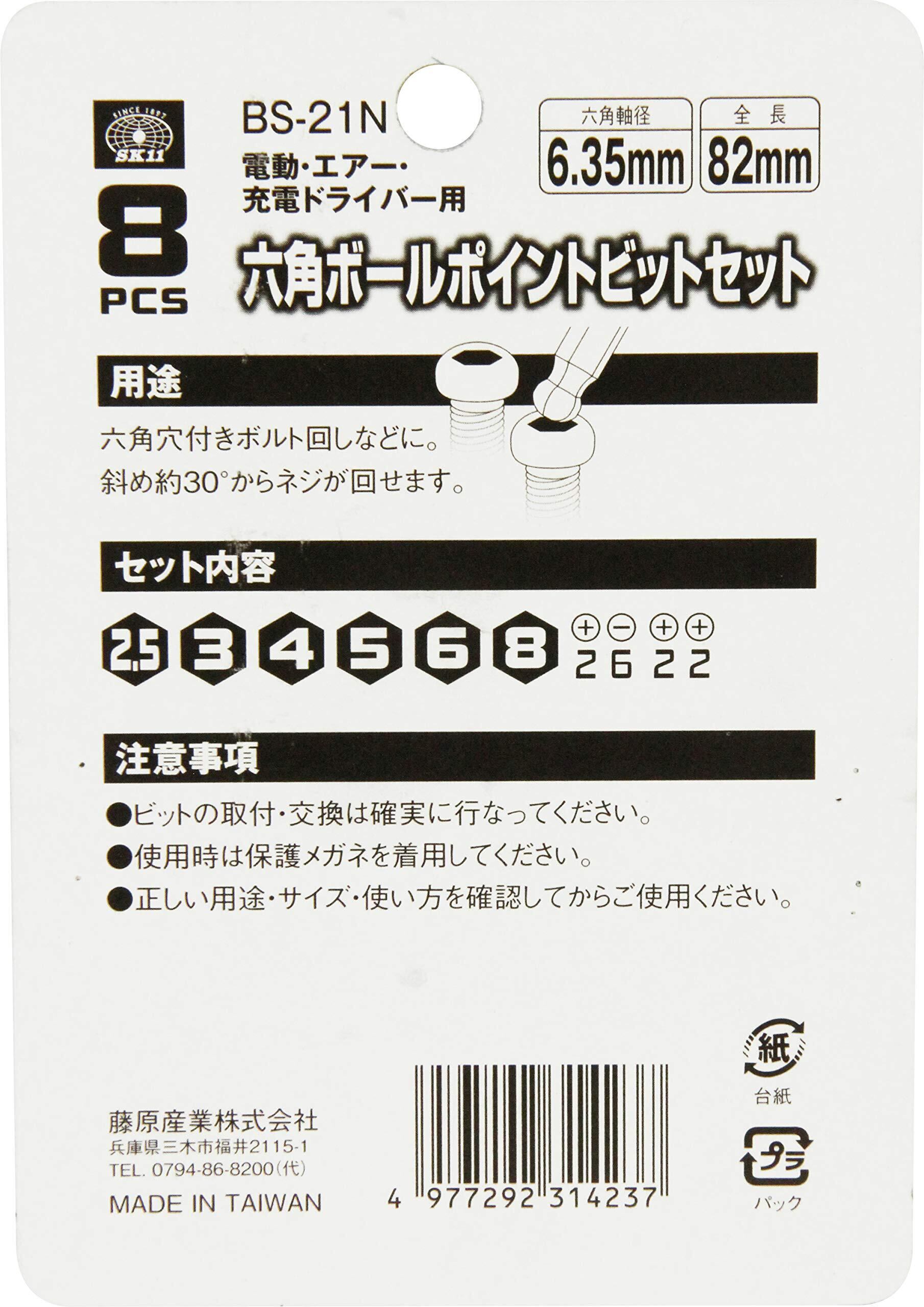 SK11(エスケー11) 六角ボールポイントビット 8点セット 82mm BS-21N 六角軸 6.35mm