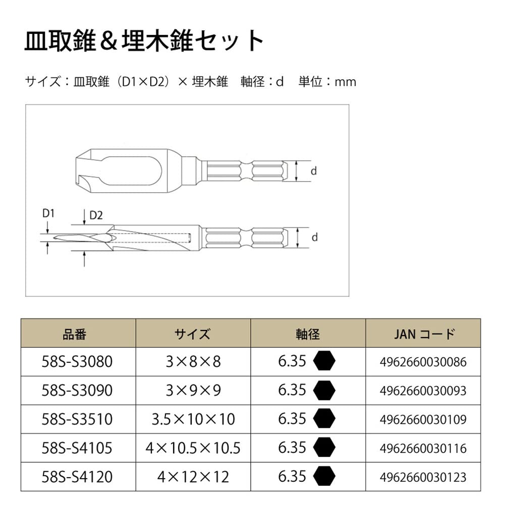 スターエム 58S-S3080 皿取錐&埋木錐セット 3×8×8
